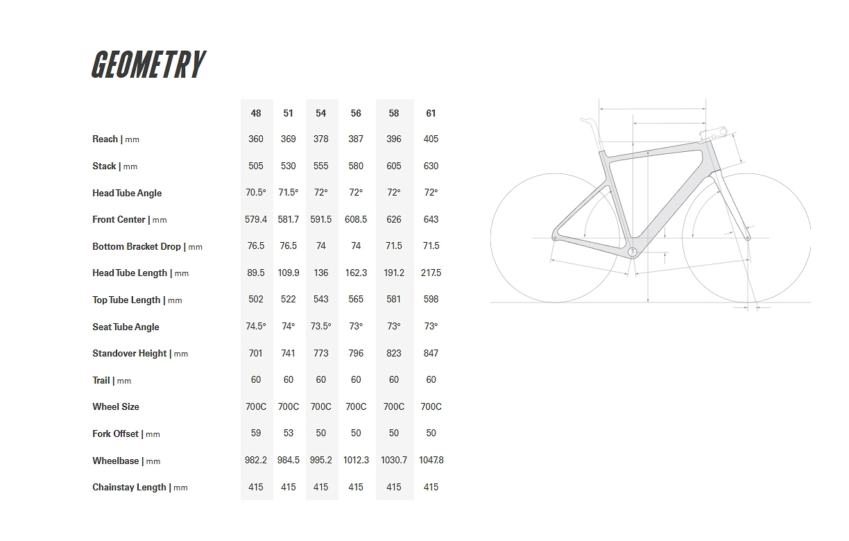 Dzięki rozstawowi osi 1013 mm, tylnym widełkom o długości 415 mm oraz kątowi główki ramy 72°, Caledonia zapewnia stabilne i przewidywalne prowadzenie, odpowiednie zarówno dla rekreacyjnych kolarzy, jak i tych startujących w wyścigach typu fondo i brevet. Zaktualizowano również wartość trail, aby zoptymalizować geometrię pod szersze opony.