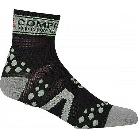 Skarpetki Compresport z technologią 3D.DOT zapewnia stabilność stopy. Dzięki wypustkom 3D.DOT skarpeta pozostaje zawsze na swoim miejscu. Model V3 charakteryzuje się jeszcze przyjemniejszym dla skóry, nieco cieńszym materiałem. Skarpety nie przesuwają się podczas ruchów stopy. Zabezpieczając tym samym przed naciskom na ścięgno achillesa oraz zabezpieczają przed otarciami. Technologia 3D.DOT to także mikromasaż dla stopy, lepsza cyrkulacja powietrza w bucie oraz tłumienie wstrząsów. Skarpety dopasowują się anatomicznie i podtrzymują łuk stopy, zapewniając mu wsparcie.Jony srebra zapobiegają powstawanie brzydkich zapachów.