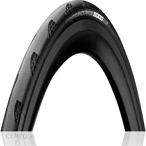 Opona szosowa Continental Grand Prix 5000 S TR posiada gładki bieżnik urozmaicony wstawkami, które rozszerzają się po bokach. Znacznie zwiększają one przyczepność na asfalcie, nawet podczas ścigania się w deszczu. Ogumienie jest bardzo lekkie za sprawą oplotu 220 TPI. Cienka wkładka Vectran Breaker dba o niezawodność opony, skutecznie chroniąc ją przed przebiciem. Mieszankę stanowi Black Chili – zawarte w niej polimery i włókna węglowe wpływają na wysoką prędkość i odpowiednie zachowanie ogumienia na zakrętach.