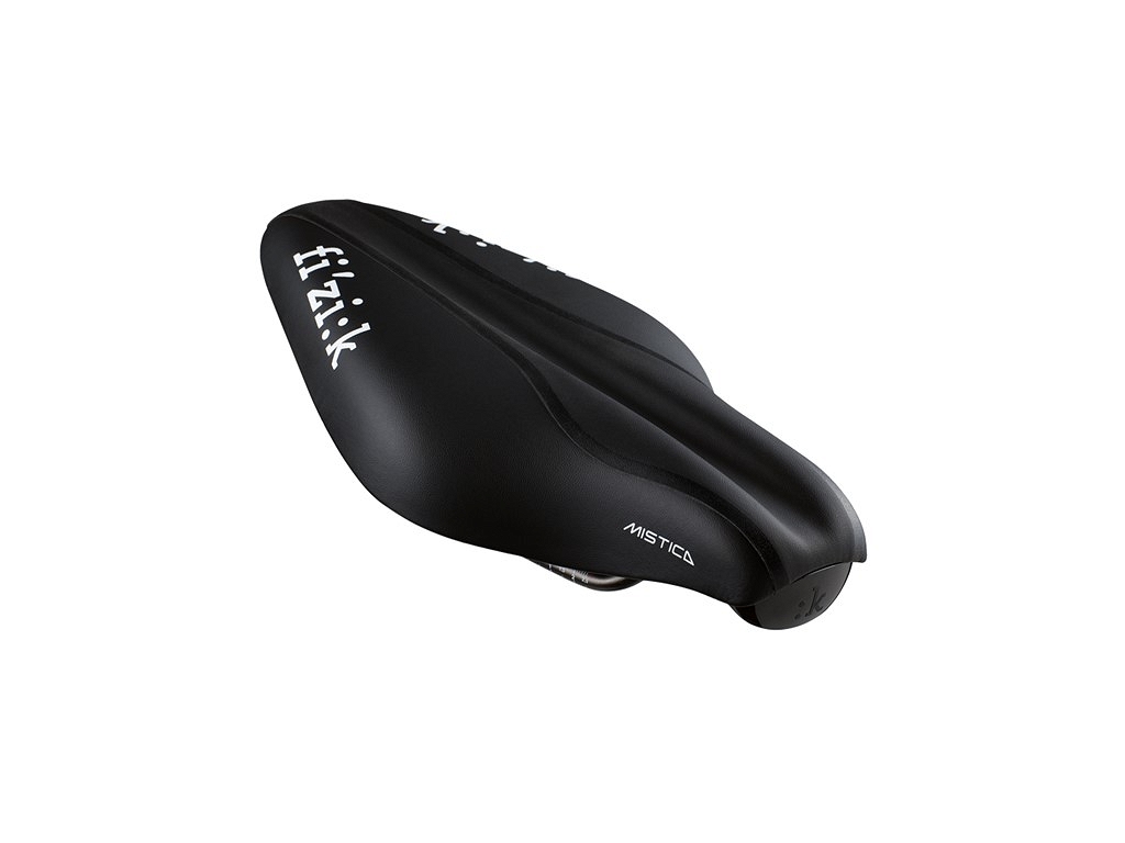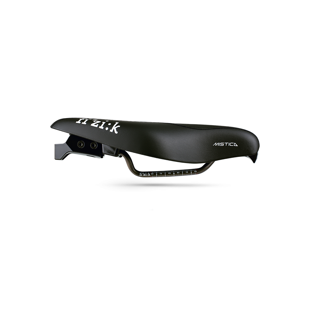 Fizik MISTICA zostało wyposażone w zintegrowany system mocowania 2 bidonów, dętki, naboju CO2. Budowa siodełka pozwala na swobodne zawieszeniu roweru w strefie zmian.