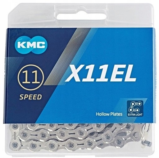 Niska masa, gładka praca i szybka zamiana przełożeń – to najważniejsze cechy łańcucha KMC X11EL. W zestawie z łańcuchem bardzo dobra spinka Missing-Link. Niską masę udało się uzyskać dzięki zaawansowanej konstrukcji. Sworznie są otworowane, a ogniwa łańcucha frezowane. Producent poleca go do systemów 11-rzędowych najważniejszych systemów - Shimano, Campagnolo i Sram.