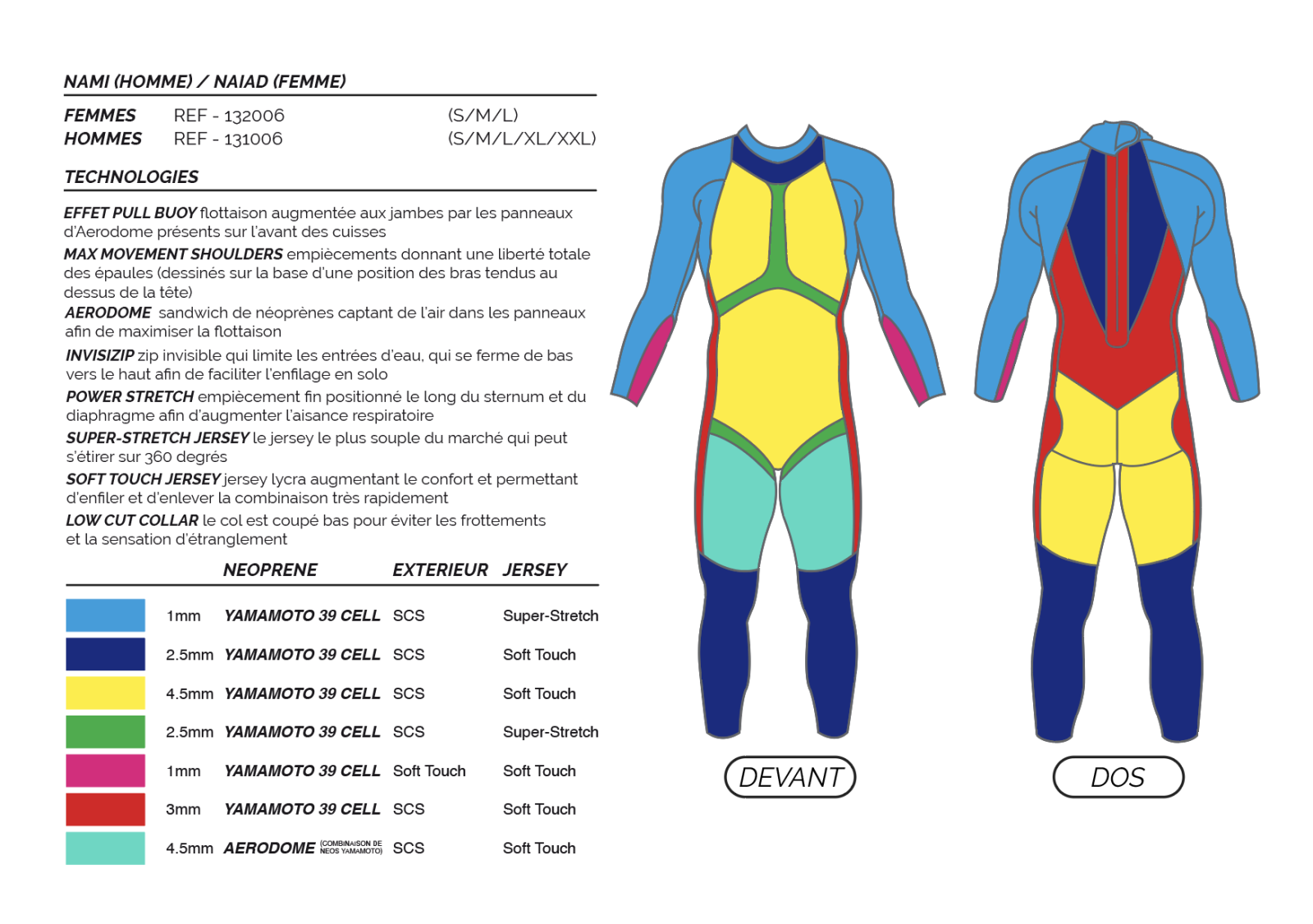 Ciało, uda: 4,5 mm Yamamoto # 39 SCS z 2 mm wkładkami w pachwinach Yamamoto # 39. Dodatkowo z przodu ud 4,5mm AERODOME dla zwiększenia wyporności w kluczowym miejscu.