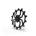 SPECYFIKACJA TECHNICZNA Ilość zębów: dolne kółko – 14T (Narrow Wide); górne kółko – 12T Łożysko: stalowe, obustronnie uszczelnione „ENDURObearings”, Abec 3, 6x17x6 Waga: 21g (waga zestawu) Materiał: aluminium 7075-T6 Wykonanie: frezowanie CNC Powłoka powierzchni: Anoda