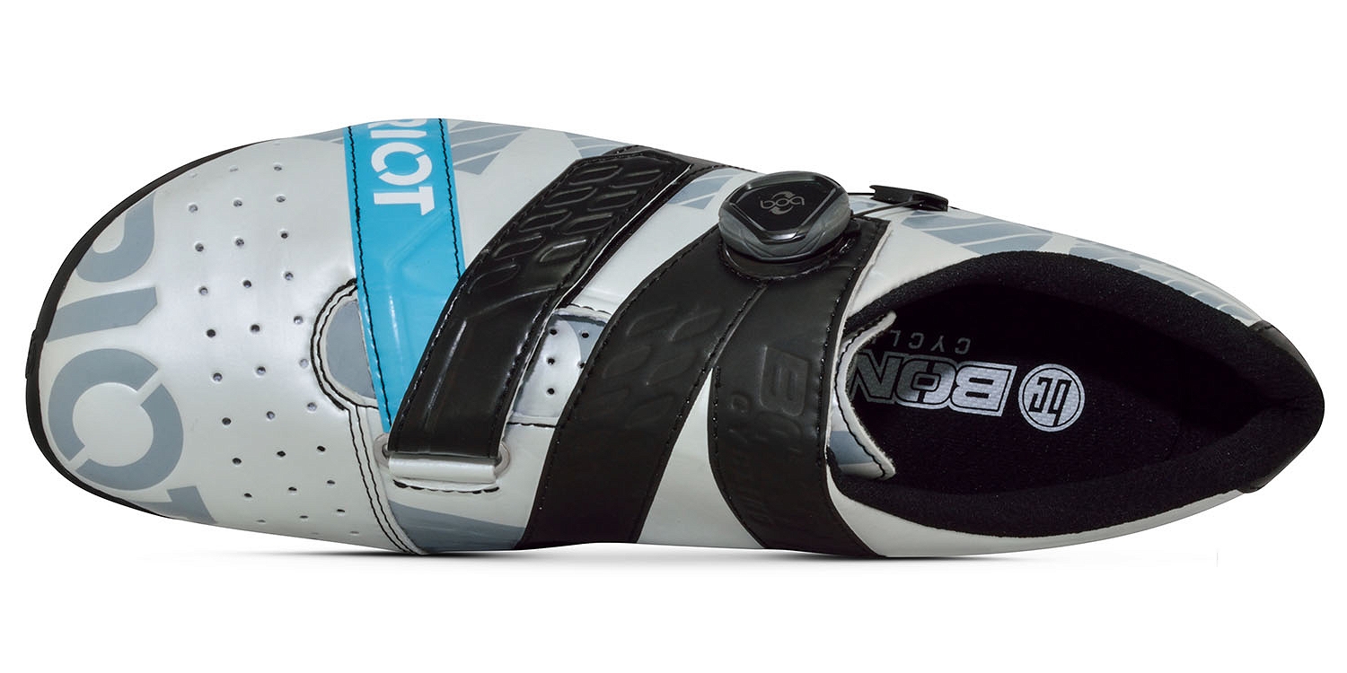 Riot + BOA łączy w sobie cechy techniczne najwyższych modeli obuwia Bont, w tym najbardziej anatomiczna i biomechanicznie poprawnie skonstruowana platforma z najbardziej wydajnym transferem mocy, przy zastosowaniu konkurencyjnej jakości materiałów oraz systemu zapięcia BOA. Dzięki temu są to najbardziej zaawansowany technicznie buty klasy podstawowej do kolarstwa szosowego.