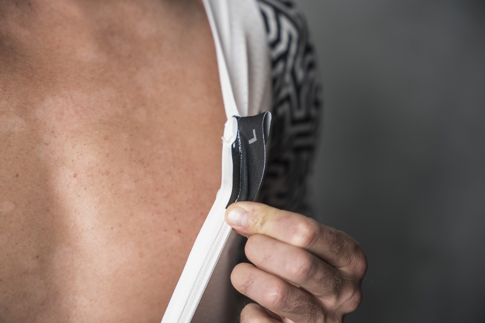 Wiemy, że zawody odbywają się w różnych warunkach atmosferycznych, a czasem w bardzo wysokich temperaturach. Samoblokujący się na całej długości zamek umożliwia rozpięcie stroju do dowolnej wysokości i zwiększenie komfortu termicznego. Zamek w każdym z naszych strojów jest od wewnątrz wykończony delikatnym materiałem, aby minimalizować ryzyko otarć i podrażnień. Suwak również jest zabezpieczony dodatkowym materiałem, aby nie podrażniał nawet podczas najdłuższych treningów.