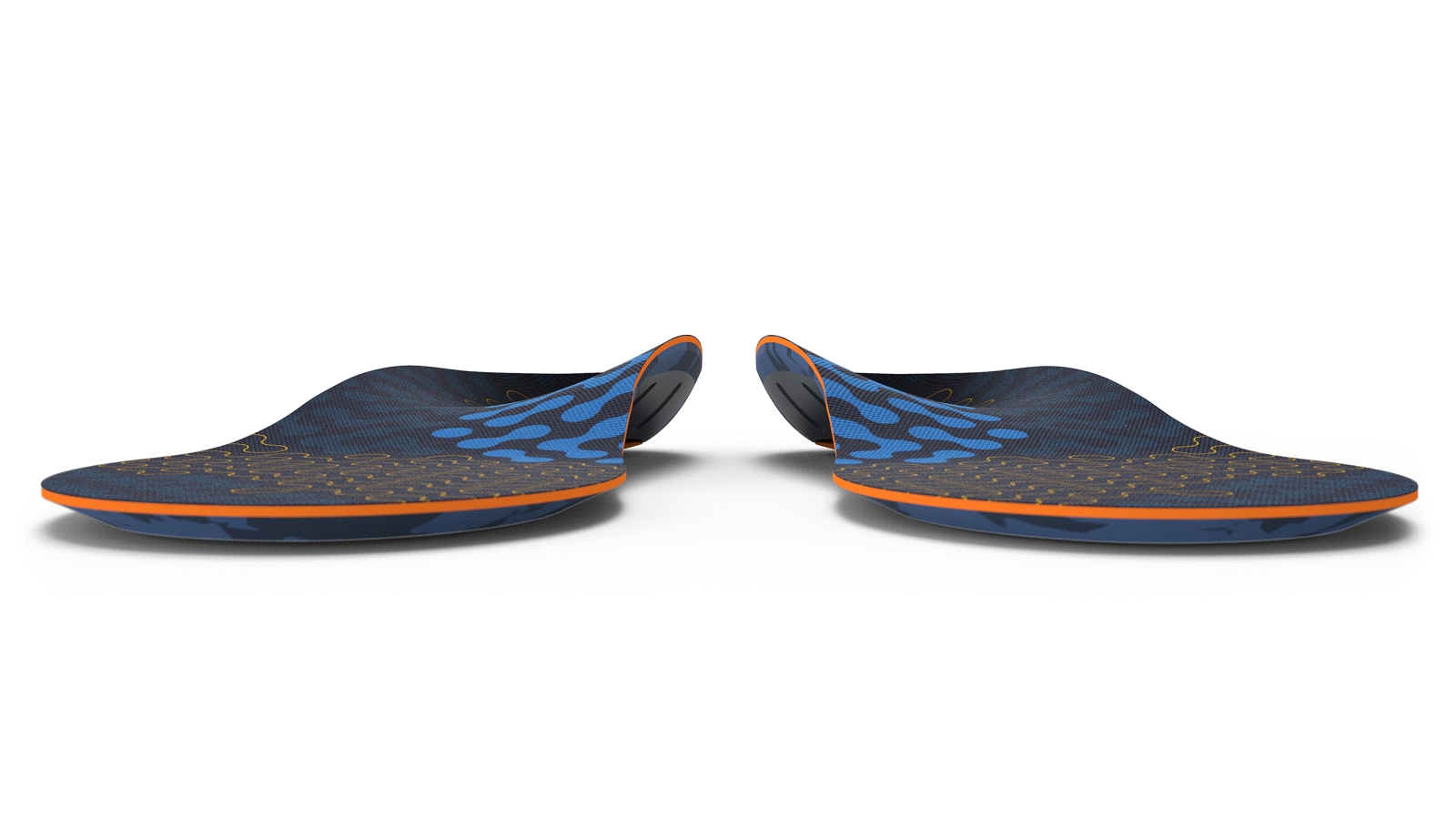 - Wyprofilowane wgłębienie na piętę: obejmuje i ustawia w odpowiedniej pozycji tkankę miękką pod piętą, maksymalizując naturalną amortyzację.