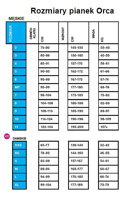 Wystarczy, że podasz nam swój wzrost, wagę i obwód w klatce piersiowej lub skorzystasz z tabeli.