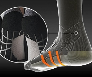 To część skarpety wykonana z włókien ROBUR™, materiału amortyzującego wstrząsy, a tym samym zmniejszającego ocieranie o but i powstawanie otarć naskórka. Specjalny ochraniacz ścięgna Achillesa projektu Lamberta-Nicholsona zapobiega nadwerężeniom tego wrażliwego ścięgna chroniąc je przez okalające poduszki, które tworzą strefę buforową pomiędzy stopą i butem i w ten sposób zapobiegają ocieraniu.